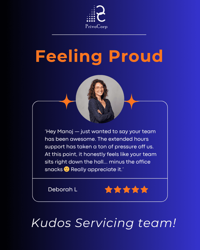 “PrivoCorp is a remarkable firm, and we are consistently pleased with their mortgage servicing assistance and services, as well as their amazing team. They are adaptable to our ever-changing needs and a pleasure to deal with”